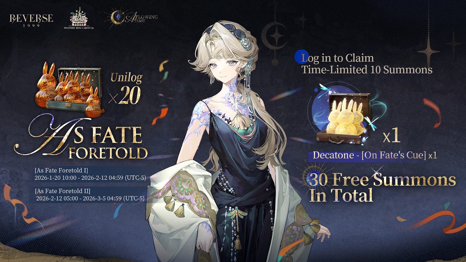 30連抽免費送:版本期間通過簽到可獲得30連抽,含「貝拉妮絲」專屬抽卡道具「命定之音·十響」及20個普通抽卡道具「獨一律」