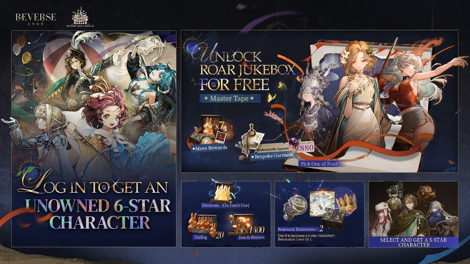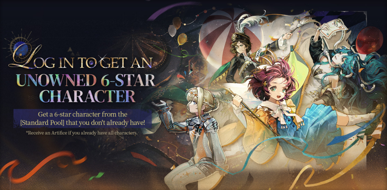 登錄即送未擁有六星角色:活動期間登錄,即可從常駐池中隨機獲得一位當前未擁有的六星角色