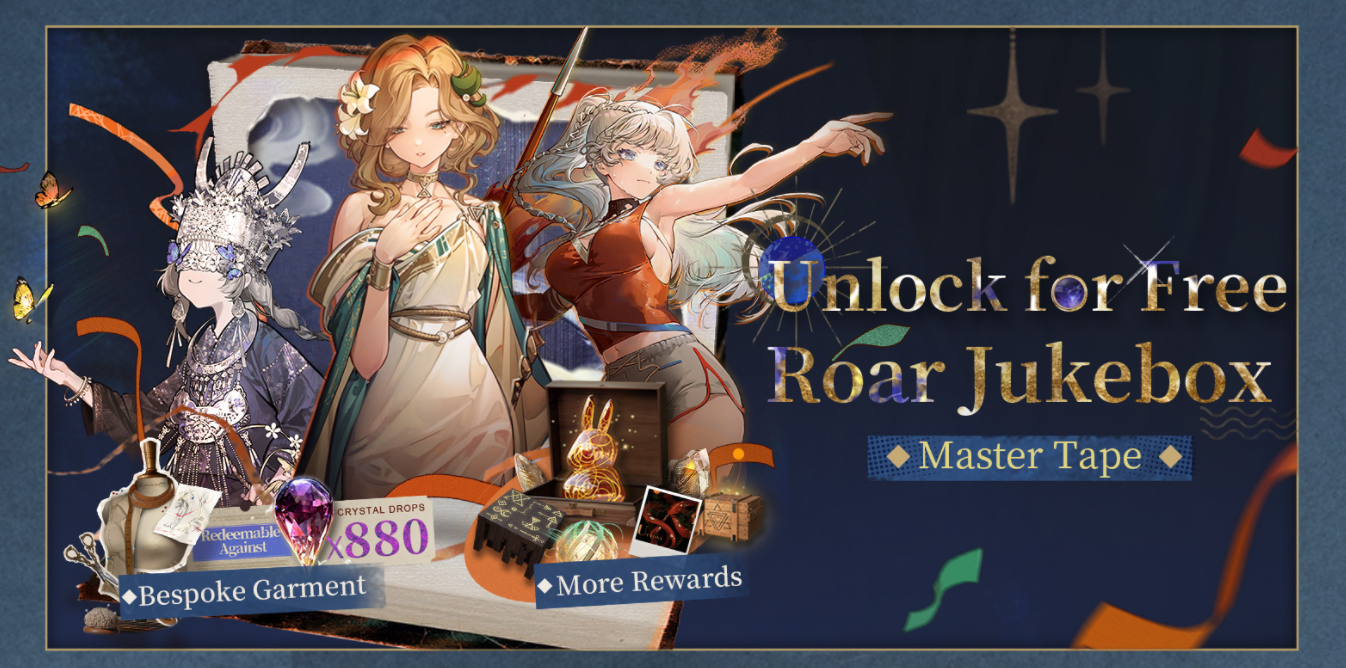 免費解鎖留聲機主題:登錄可獲取主題「咆哮唱片|母帶」,累計播放達到10分貝後可自選時裝寶箱,內含「溫妮弗雷德·宣講金星」、「迪肯斯·尖端朝上」、「氣球派對·銀蝶謠」或880晶簇兌換券