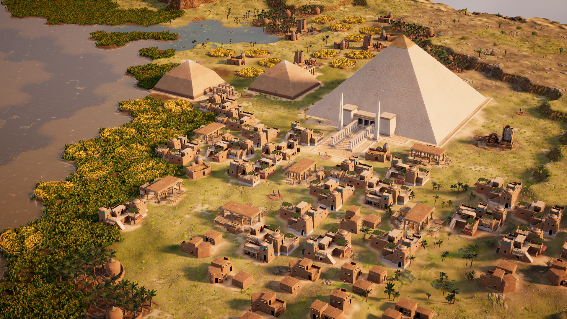 在《古埃及》DLC中,玩家需驾驭尼罗河的自然节律。适应季节性洪水,改造土地为沃土,策略性布局建筑以实现协同效应最大化。将建筑组合为强大复合体,建造宏伟巨型工程,将你的定居点从沙漠前哨发展为繁荣帝国。