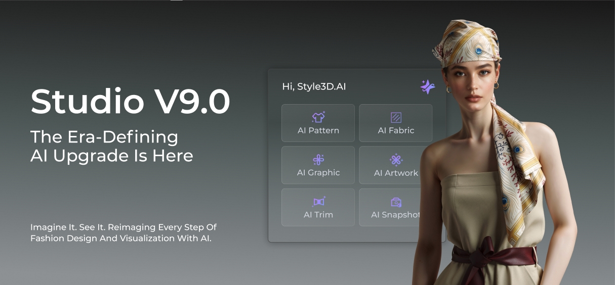 Style3D Studio V9.0已推出,这是有史以来最强大的版本,引领了人工智能数字时尚的新时代。从构思到可视化和生产,V9.0通过以下方式改变您的工作流程: