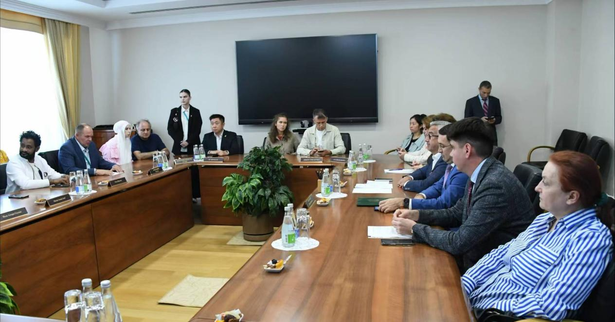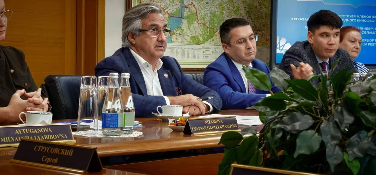 2025年9月8日,全体评委与俄罗斯鞑靼斯坦共和国副总理沙伊赫拉季耶夫·瓦西里·加布特尔加亚佐维奇就本届电影节的影片筛选、展映安排、观众反馈等核心工作进行深入沟通,同步针对电影节未来品牌建设、国际资源整合等议题提出改进建议。中国(四川)动漫专委会主席吴泓琏作为电影节动画单元评委参会,重点提出中俄影视合拍倡议,成为会议核心亮点。