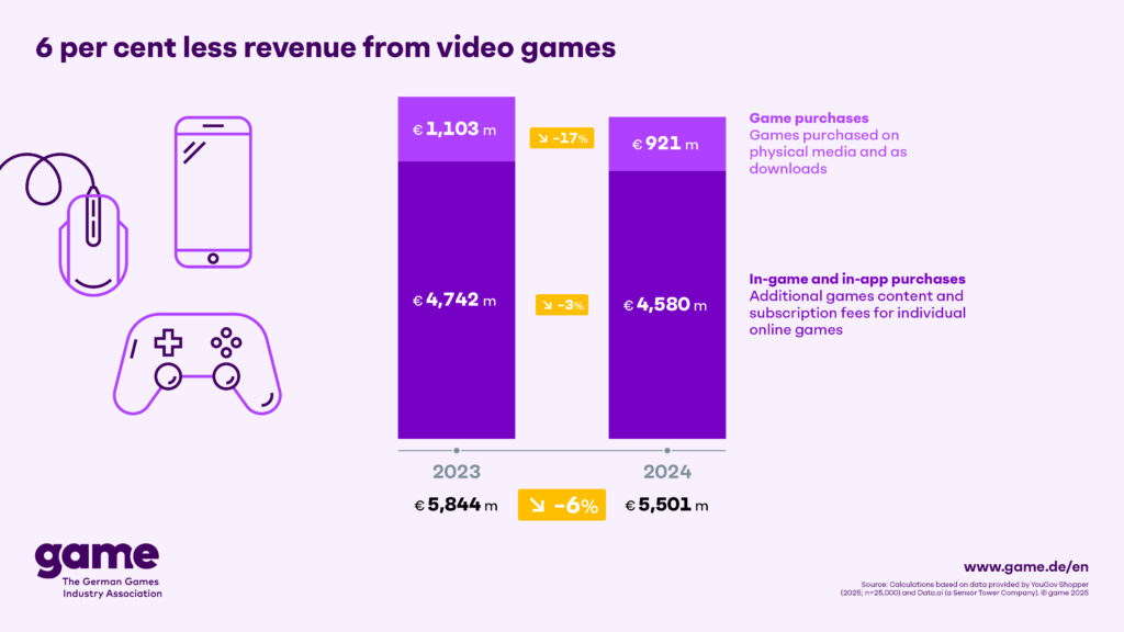 经过多年的增长,德国游戏市场在2024年休整 2024年,游戏、游戏硬件和在线游戏服务的销售收入将下降6%,降[…..] […]