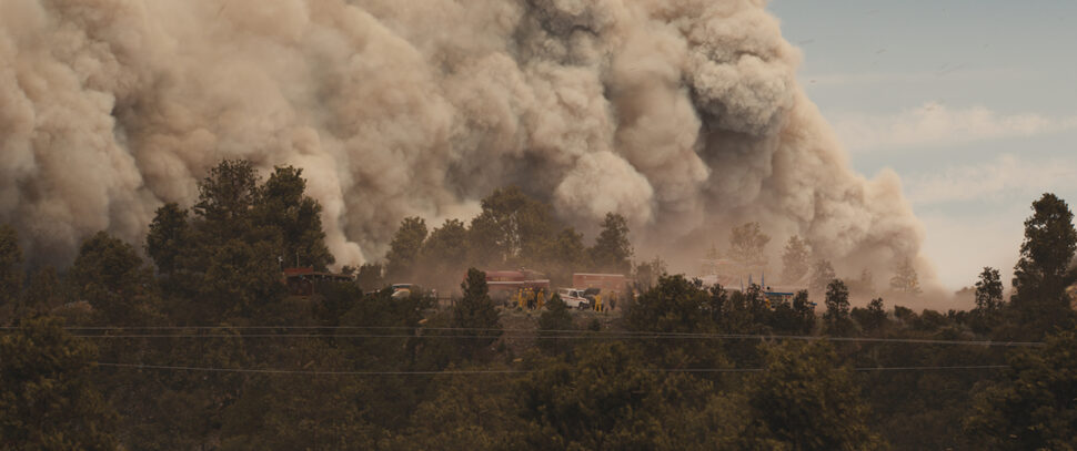 One key aspect of Cinesite’s visual effects involved recreating the huge smoke plumes, which stretched hundreds of miles across Northern California, from a range of distances and perspectives. VFX supervisor Charlie had sourced a quantity of reference photography of previous fires, aerial and ground footage, which was a vital resource.