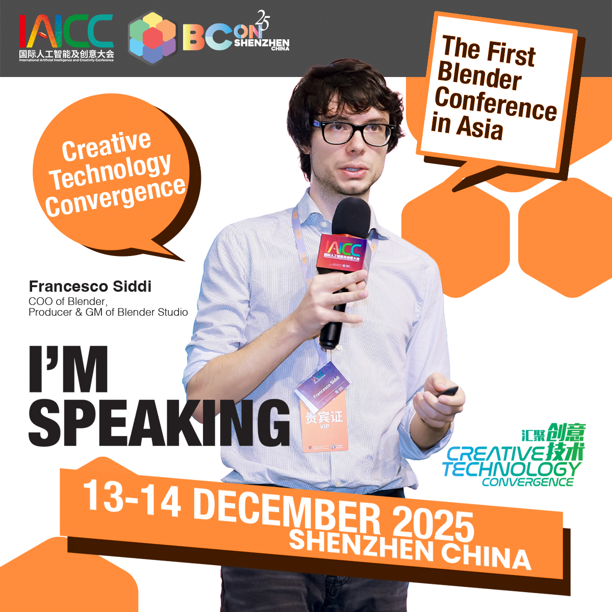We are honored to announce that Francesco Siddi, Chief Operating Officer of Blender and General Manager of Blender Studio, will attend the inaugural Asian Blender Conference (BCON Shenzhen 2025) as the opening keynote speaker!